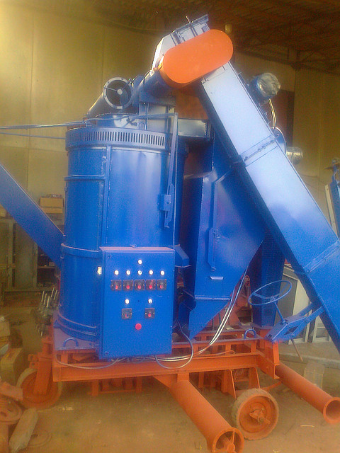 Великі домішки опускаються в піддон і видаляються там транспортером відходів.